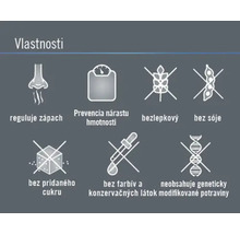 - VlastnostiBez gluténu, Bez sóje, Bez pridaného cukru, Bez farbív, Bez konzervačných látok, Neobsahuje geneticky modifikované potraviny