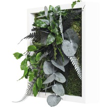 Tento rastlinný obraz s dizajnom džungle je zasadený do rámu z plného dreva. Všetky použité rastliny a machy sú pravé a sú zakonzervované 100% prírodným spôsobom Z tohto dôvodu sú určené výhradne na použitie v interiéri.